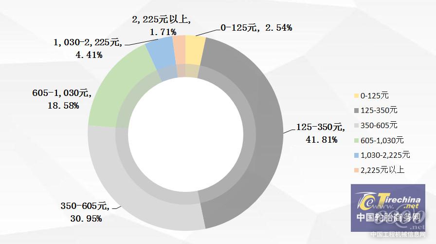 3.除了“双十一”所在的11月份,全网乘用车轮胎的每单成交价稳定在800-900元区间,价格波动并不明显。
