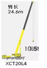 主臂24.6m,标准吊重10.5t,主臂17.7m能吊16.5t,这个数据对于业内20吨来说,也是无人能及。