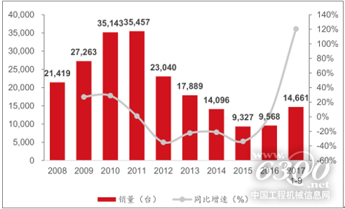 根据施工顺序,混凝土机械、起重机等工程机械产品有望呈现与挖机相仿的复苏景气度。一般而言,起重机、混凝土机械作为后周期产品,滞后挖掘机约3个月~6个月。从目前的销量数据看,起重机、混凝土机械有望延续挖掘机强劲的复苏势头。根据统计数据,截止至 2017年9月,轮式起重机累计销量达到 14,661台,同比增长 120.47%,2011年行业景气高点年销量在3.5万台左右。混凝土泵车方面,三一重工2017年上半年混凝土机械实现销售收入66.09亿元,同比增长 32%,2013年~2016年同期增速分别为-39.60%、-8.73%、-32.60%以及-27.00%;中联重科 2017年上半年混凝土机械实现销售收入36.26亿元,同比增长71.58%,2013年~2016年同期增速分别为-47.19%、-32.47%、-52.96%以及-25.50%。