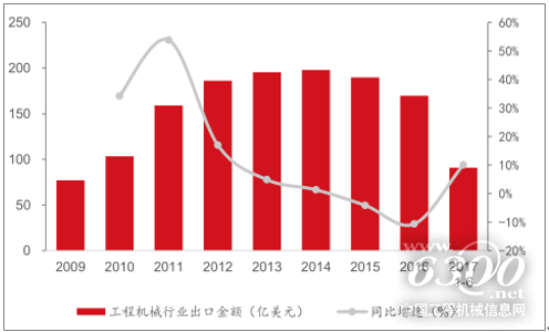 基于“一带一路” 沿线国家活跃的基建投资需求,其已成为我国工程机械行业“走出去” 重点开拓的目标市场,相关企业产业链布局已取得相当成效。2017 年上半年,我国工程机械行业累计出口额 90.81亿美元,同比增长10.10%。具体到“一带一路”沿线市场,2016年我国工程机械产品出口“一带一路”沿线国家规模达到87.3亿美元,同比增长 2.8%,占当年我国工程机械出口总额 51.47%。包括三一重工等在内的国内工程机械设备制造商巨头纷纷加速对于海外,尤其是“一带一路”沿线市场的布局。主机制造商领域,以三一重工为例,其海外收入于2015 年首次突破百亿元规模,根据“11123”五年经营规划,至 2022 年,海外销售计划实现营业收入100亿美元,其中“一带一路”沿线市场占比 60%;核心零部件供应商领域,以恒立液压为例,未来海外业务收入预计将从目前的约 30%%提升至 50%。