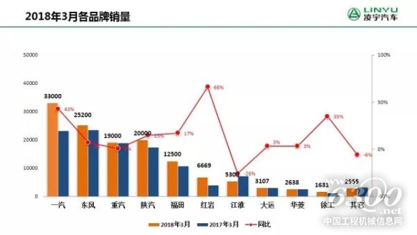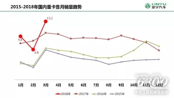 2018年注定是不平凡的一年,3月,我国重卡市场销售达13.2万辆,超越了2011年3月创下的月销13万的记录,比去年同期的11.46万辆增长15%。