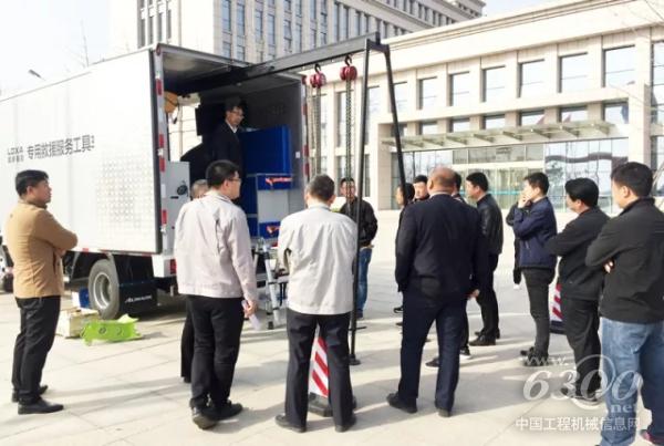 专用救援服务工具样车评审现场,工作人员进行样车功能介绍并模拟故障现场处理