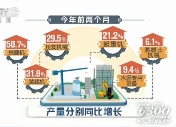 中国工程机械工业协会秘书长 苏子孟:据我们协会统计,一季度销量应该同比增长30%以上,其中个别产品涨幅更大,(三月份)挖掘机国内的销量达到了36643台,同比增长达到78%,这是近几年历史最好水平。