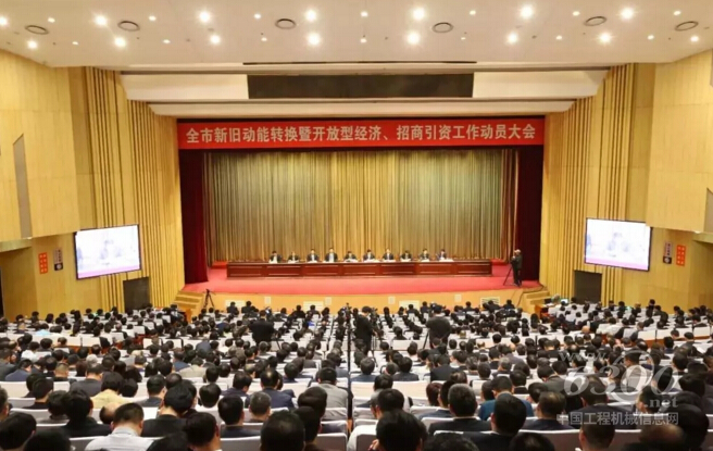 4月16日,临沂市委、市政府召开全市新旧动能转换暨开放型经济、招商引资工作动员大会。山东临工总经理文德刚参加大会并作为企业代表发言。