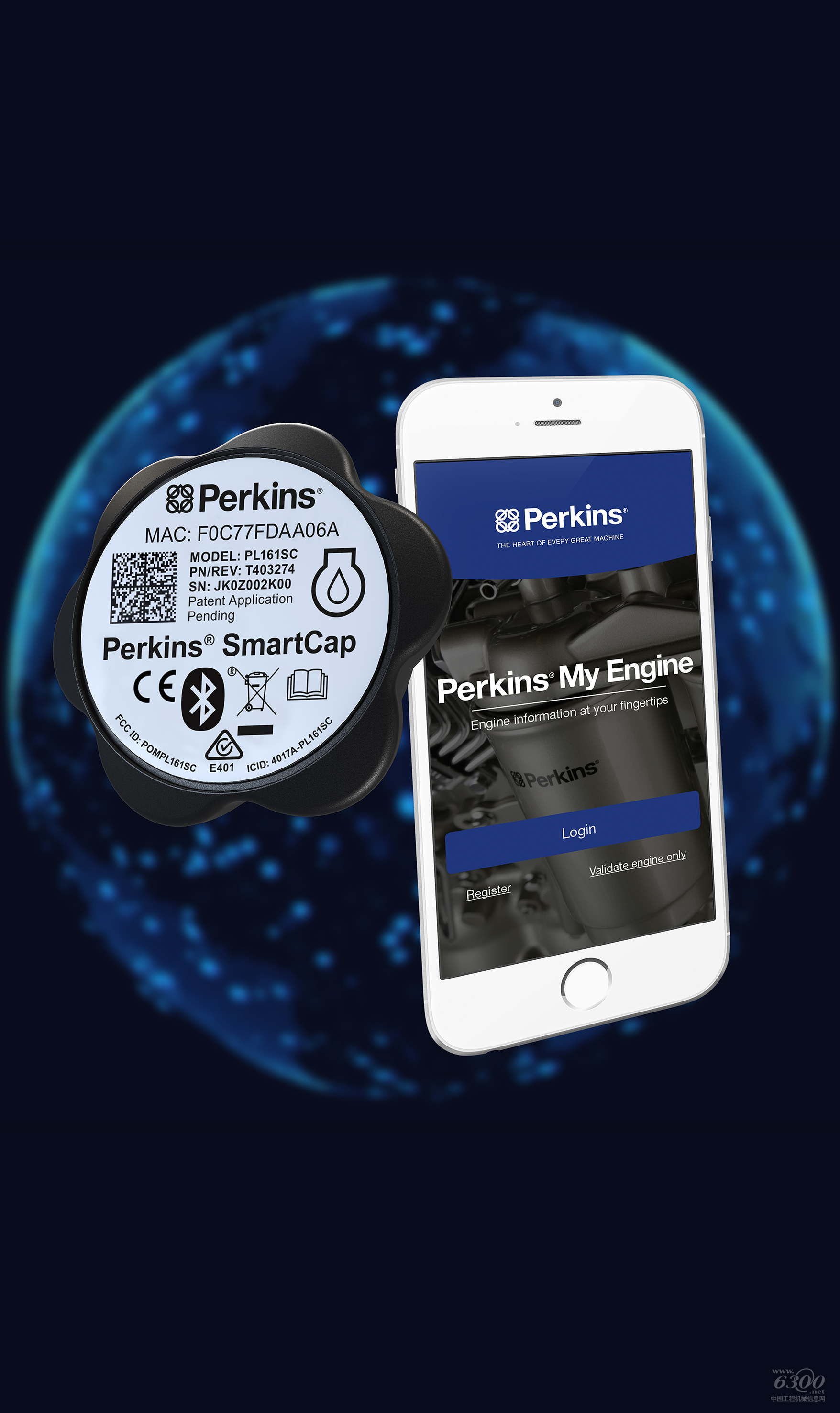 Perkins智能机油盖(Perkins® SmartCap)适用于Perkins所有新型和既有的机械式和电控发动机型号。这个智能机油盖安装十分方便,终端用户只需用它取代原来的机油盖,即可通过智能手机上的Perkins® 维护宝(Perkins® My Engine)App,将他们正在使用的发动机和手机连接起来。机油盖会监测发动机的运作情况,然后把数据直接传送到Perkins维护宝App。