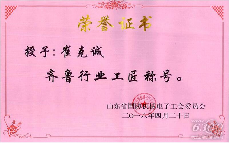 4月20日,在山东省国防机械电子工会组织举办的“为创新驱动耕耘,为工匠精神点赞”演讲报告会上,崔克诚被命名为“齐鲁行业工匠”,被授牌命名为“崔克诚工匠创新工作室”,是继孙佑军、向俊兵之后,公司第三位山东省行业大工匠。同时,公司工会被授牌命名为“工匠文化品牌创建示范单位”。