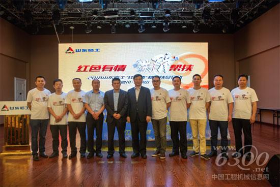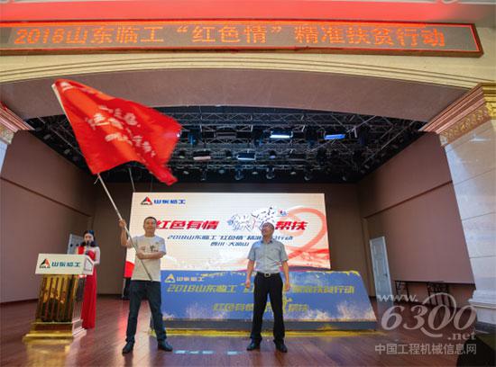 (山东临工工程机械有限公司副总经理史生勇为山东临工“红色情”精准扶贫大凉山分队授旗)