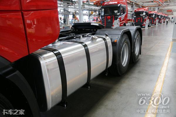 潍柴13升发动机,型号为WP13.500E501,排放标准达到国五水平,功率为500马力,发动机在950转到1400转区间可以爆发出最大2400牛.米的最大扭矩。首批车型变速箱型号为法士特12JSDX240TA,最高挡传动比为0.78;后桥为汉德469冲焊桥,速比是3.36,后续还可以提供更多的动力链供用户选择。