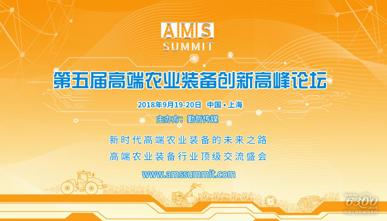 为促进现代农业快速发展,助力农机装备行业转型升级,第五届高端农业装备创新高峰论坛(AMS 2018)将于2018年9月19-20日在中国·上海举办。本次论坛以“新时代高端农业装备的未来之路”为主题,届时现场将有来自政府农机主管部门、国内外农机企业、农机零部件企业、农机科研设计单位等企事业单位400余位行业专家人士共聚一堂,讨论时下热点话题与最新技术,共同探讨新时代高端农业装备的未来发展之道。