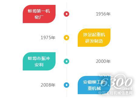 安徽柳工成立于2008年,其前身蚌埠起重机厂历史最早可追溯到1956年的蚌埠第一机窑厂。自1975年涉足起重机的研发制造以来,先后经历蚌埠起重机厂时期,蚌埠振冲安利机械有限公司时期,于2008年,正式成为柳工大家庭中的一员。