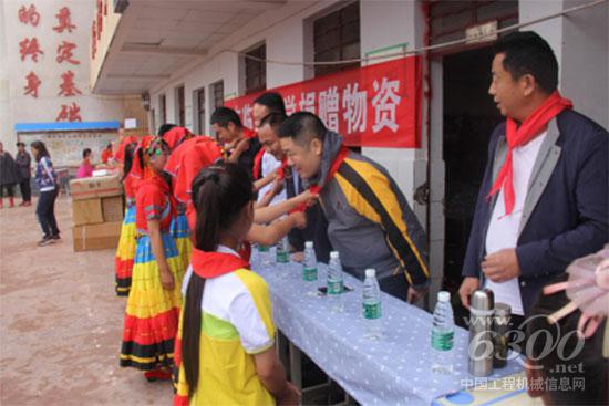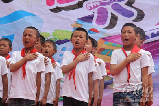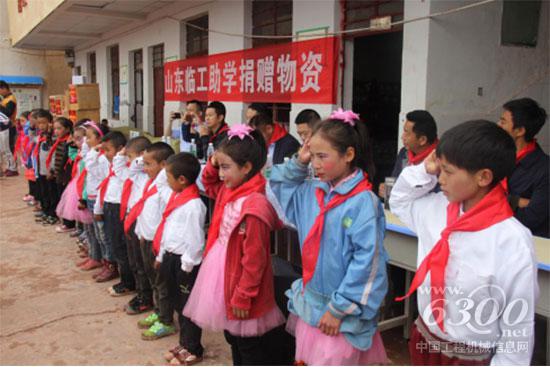 活动伊始,在庄严的歌声中,少先队员代表为出席活动的领导和嘉宾们佩戴红领巾,表达了全校师生们对山东临工一直以来给予联补乡中心校的关爱和支持以最崇高的敬意。