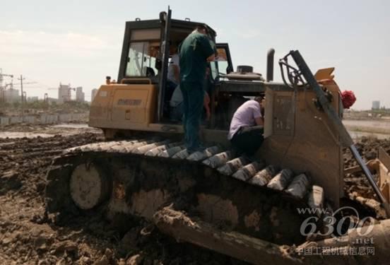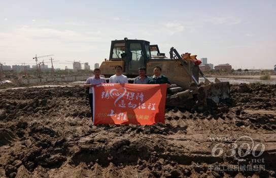 踩着泥泞的道路,走访第二站来到海宁工地,用户杨老板的DH17全液压推土机在园区进行土地平整作业。