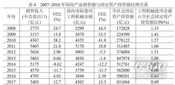 2008~2017年国内产品销售额与固定资产投资额比例关系