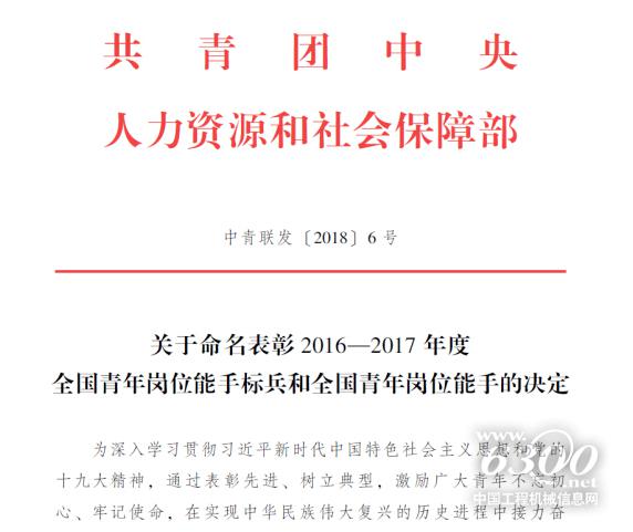 近日,共青团中央、人力资源和社会保障部联合发布《关于命名表彰2016—2017年度全国青年岗位能手标兵和全国青年岗位能手的决定》。山东临工挖掘机事业部维修工刘敬鹏凭借在“2017中国技能大赛暨第三届全国工程机械维修工职业技能竞赛”上获得个人一等奖的优异表现,被评为“全国青年岗位能手”。