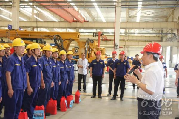 他亲切地对大家说:“你们辛苦了!在如此高温下,你们仍然坚守在一线岗位,为了徐工的发展,为了徐州的建设辛勤付出、做出贡献,感谢你们!”