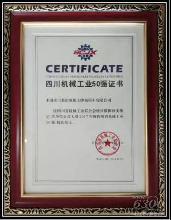 此次评选活动由四川省机械工业联合会组织评选,经专家组对全省近3000家参评企业营业收入、技术创新能力等各项指标进行严格审查后,做出的公平、公正评选结果。最终,中国重汽集团成都王牌商用车有限公司脱颖而出,成功入围四川省机械工业50强。