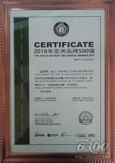 8月29日,由世界品牌实验室和世界企业家集团共同编制和发布的2018年《亚洲品牌500强》排行榜,在香港召开的“亚洲品牌大会”上揭晓。在基于市场占有率、品牌忠诚度和亚洲领导力的评价中,品牌价值连年攀升的山东临工再次上榜。