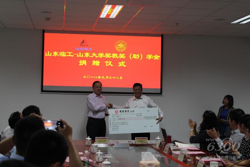 9月28日下午,山东临工工程机械有限公司与山东大学在山东大学机械工程学院正式签署捐赠协议。山东临工工程机械有限公司向山东大学捐赠300万元,设立“山东临工-山东大学奖教奖(助)学金”。 山东临工董事长王志中、总经理助理宋晓颖,山东大学常务副校长王琪珑参加捐赠仪式。
