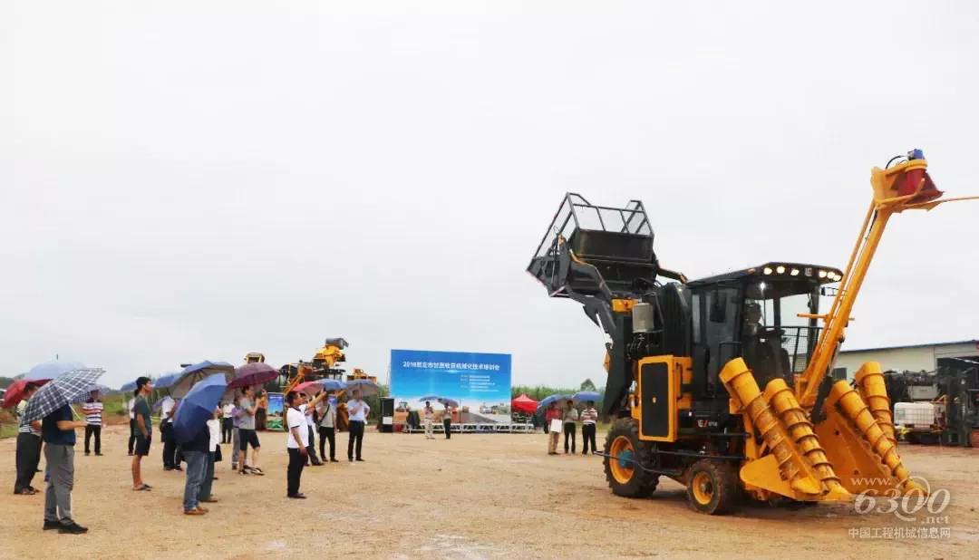 柳工农机公司2018年最新研发的S718甘蔗收获机也在培训会上亮相,为客户展示了其工作性能及作业方式。该款新机型为轮式带自卸斗甘蔗收获机,将装载机的举升斗和甘蔗收获机进行了完美结合,在继承原有产品高效作业的基础上,通过优化各工作装置,不断提升收割作业质量,整机适合工作行距1.2m,配置2.4m³装载斗,卸料高度3.6米,并具备中间收集过程抖料功能,充分利用装载斗空间,拥有不需要配置随机的收集车,不需要反复转运,转场快,碾压少等作业特点。