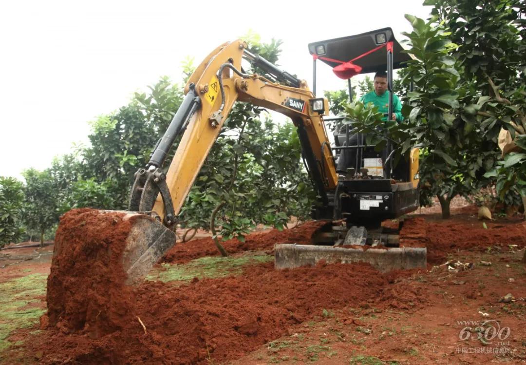 而三一微挖具有机身低矮、结构紧凑、性能卓越等优点,可以灵活穿行各种果园,完成果园除草开荒、土地平整、开沟施肥等工况,是替代人工的好帮手。