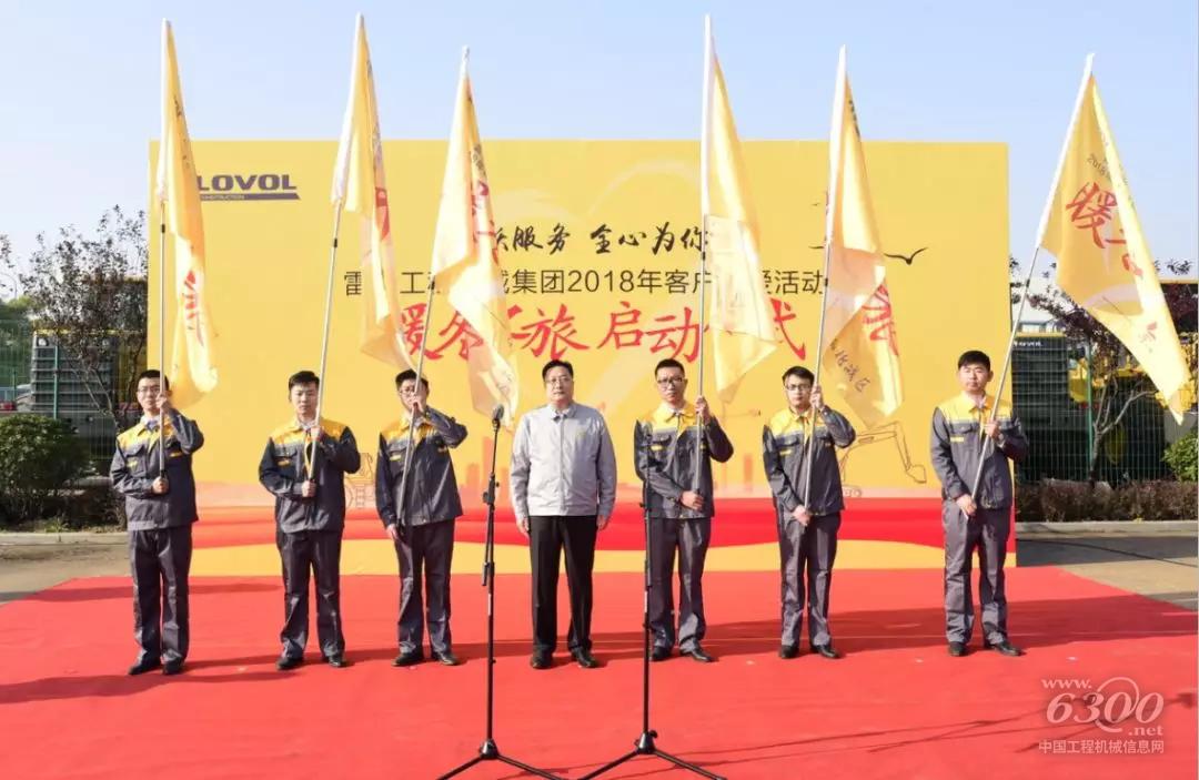 雷沃工程机械集团总经理王宾现场致辞,并为服务将士授旗。王总表示,此次暖冬之旅,雷沃全体人员要想客户之所想,急客户之所急,同时带动合作伙伴,夯实服务基础,提升服务能力。更希望大家在服务走访过程中,发现问题,解决问题,后台团队及时响应、快速决策。