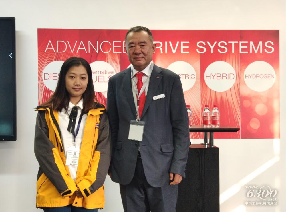 利勃海尔机械服务(上海)有限公司土方和矿用部门总经理Armin Natter先生和中国工程机械信息网编辑亲切合影