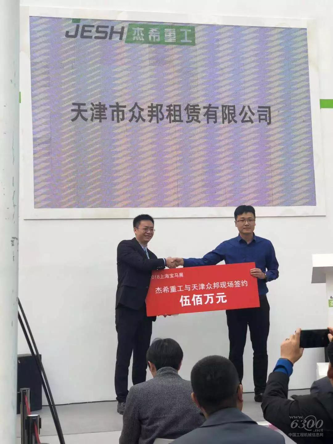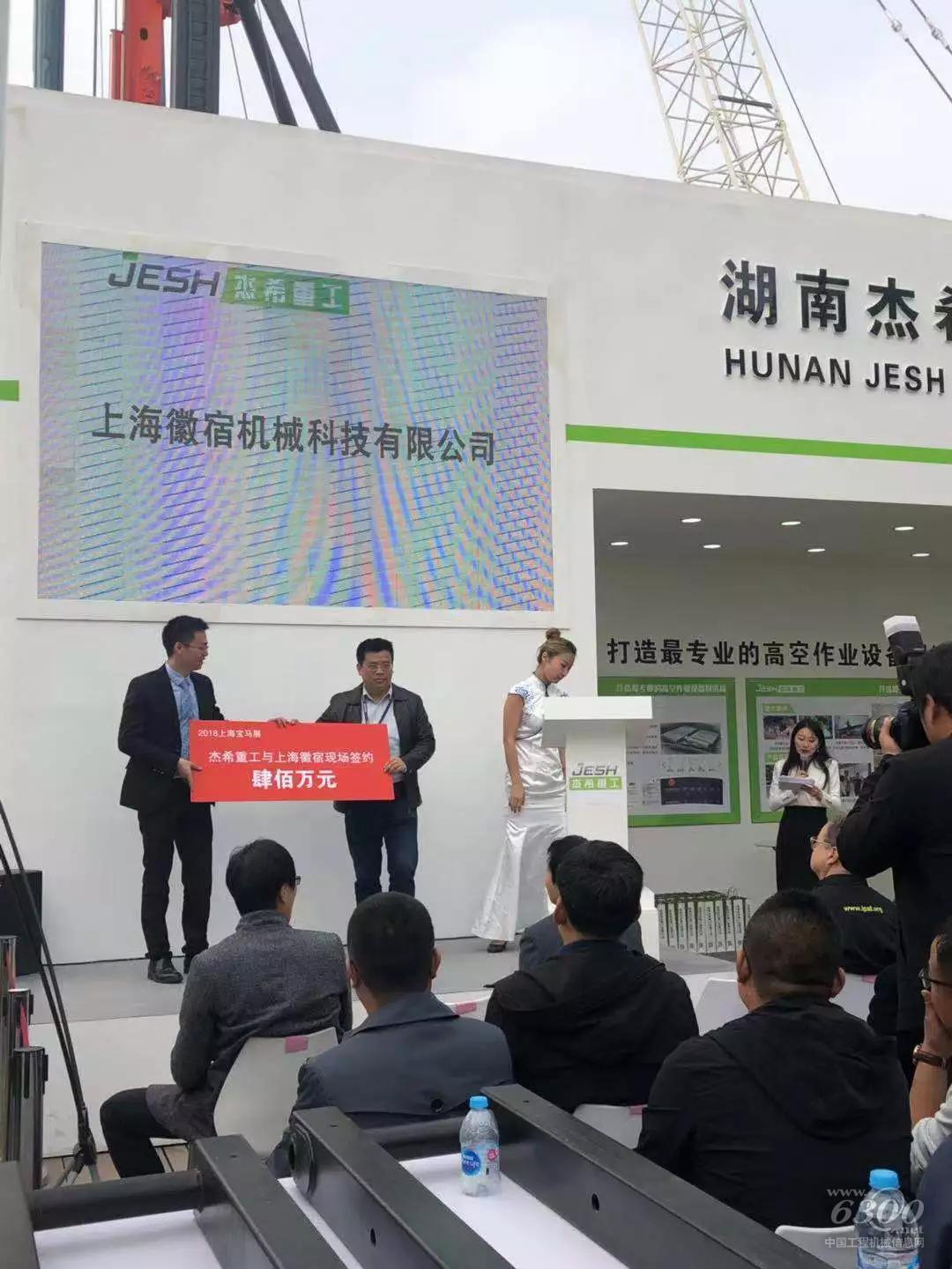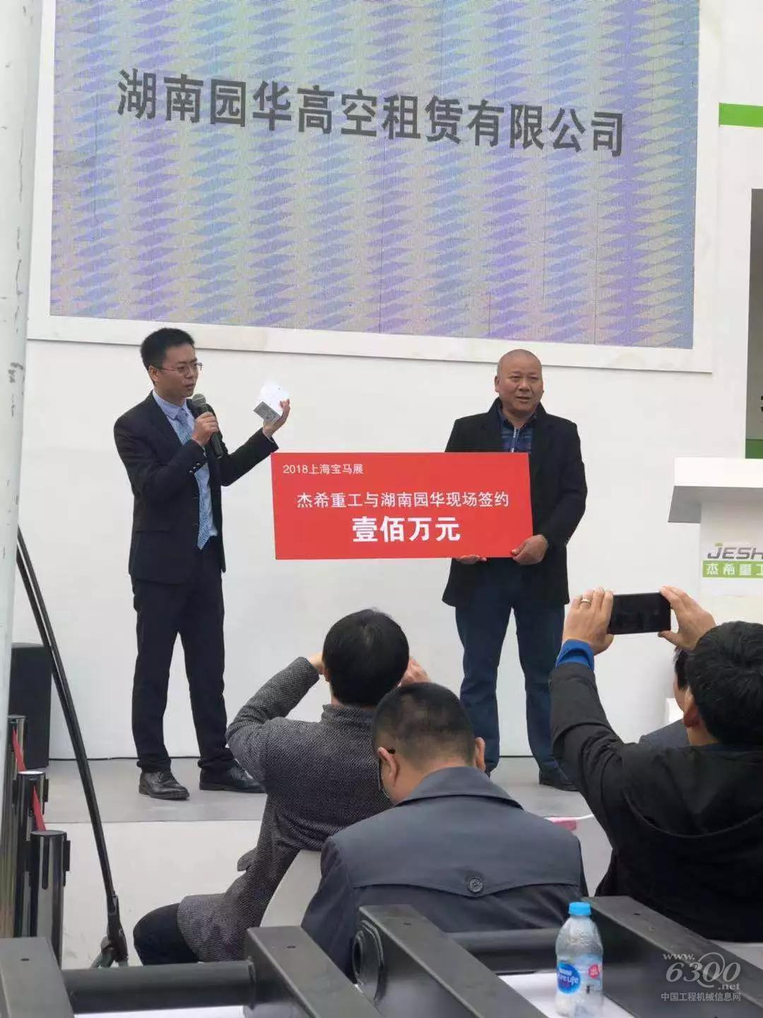 发布会期间,举行了一系列的签约仪式。杰希重工分别与上海徽宿机械设备有限公司、湖南园华高空车租赁有限公司、天津市众邦租赁有限公司签订了数百万元的合同。为表达客户对杰希的厚爱,向总亲自向现场签约客户赠送了华为P20手机,以示谢意,同时也希望杰希像华为一样创新、自强,成为名族企业的骄傲。
