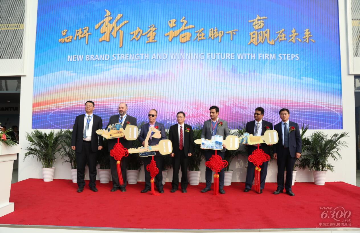 发布会期间,山推进出口公司总经理常洋向与会嘉宾介绍了全球产品和服务战略,山推董事长刘会胜、总经理张民,与协会领导尚海波一起向印度、津巴布韦、俄罗斯、中东、巴基斯坦的客户移交新机钥匙。