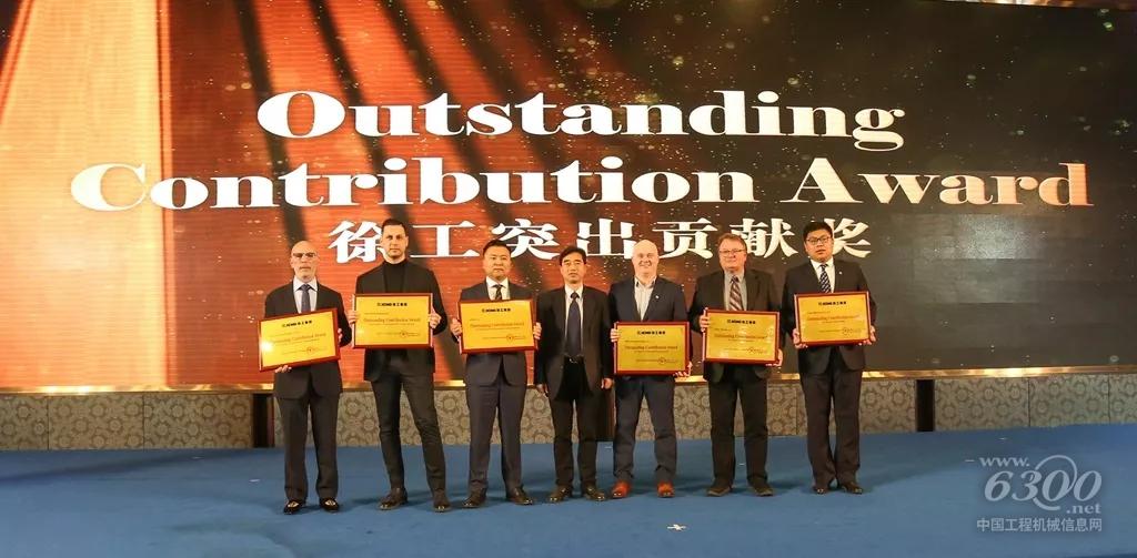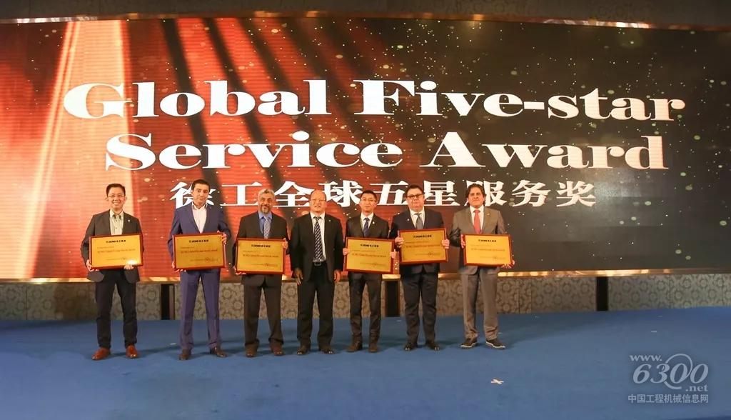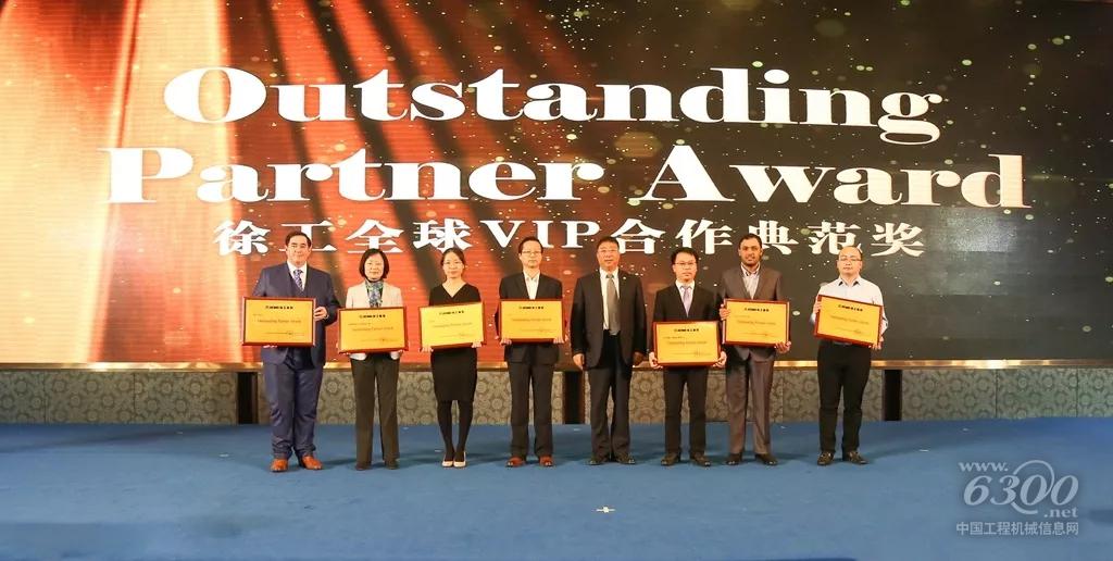 晚宴现场,为表彰在徐工国际化的进程中做出突出贡献的海外经销商及客户,隆重颁发了全球五星服务奖、全球公益大使奖、突出贡献奖、全球VIP合作典范奖、全球十大经销商等相关奖项。