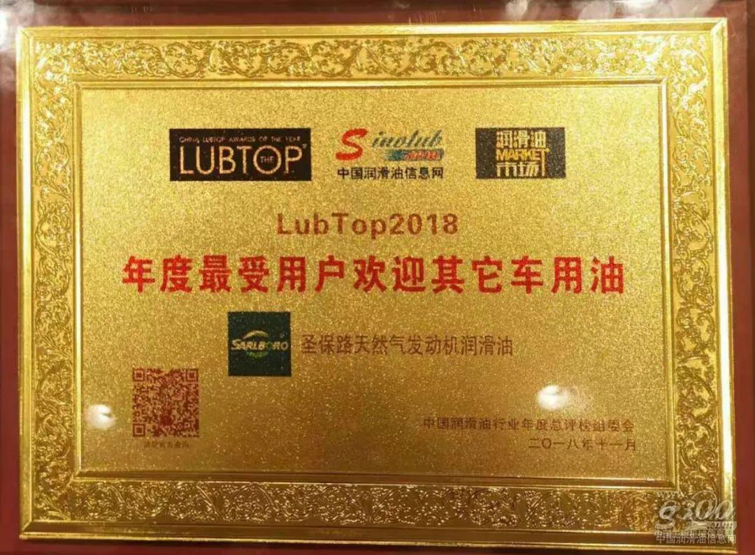 “LubTop2018年度最受用户欢迎天然气发动机润滑油”