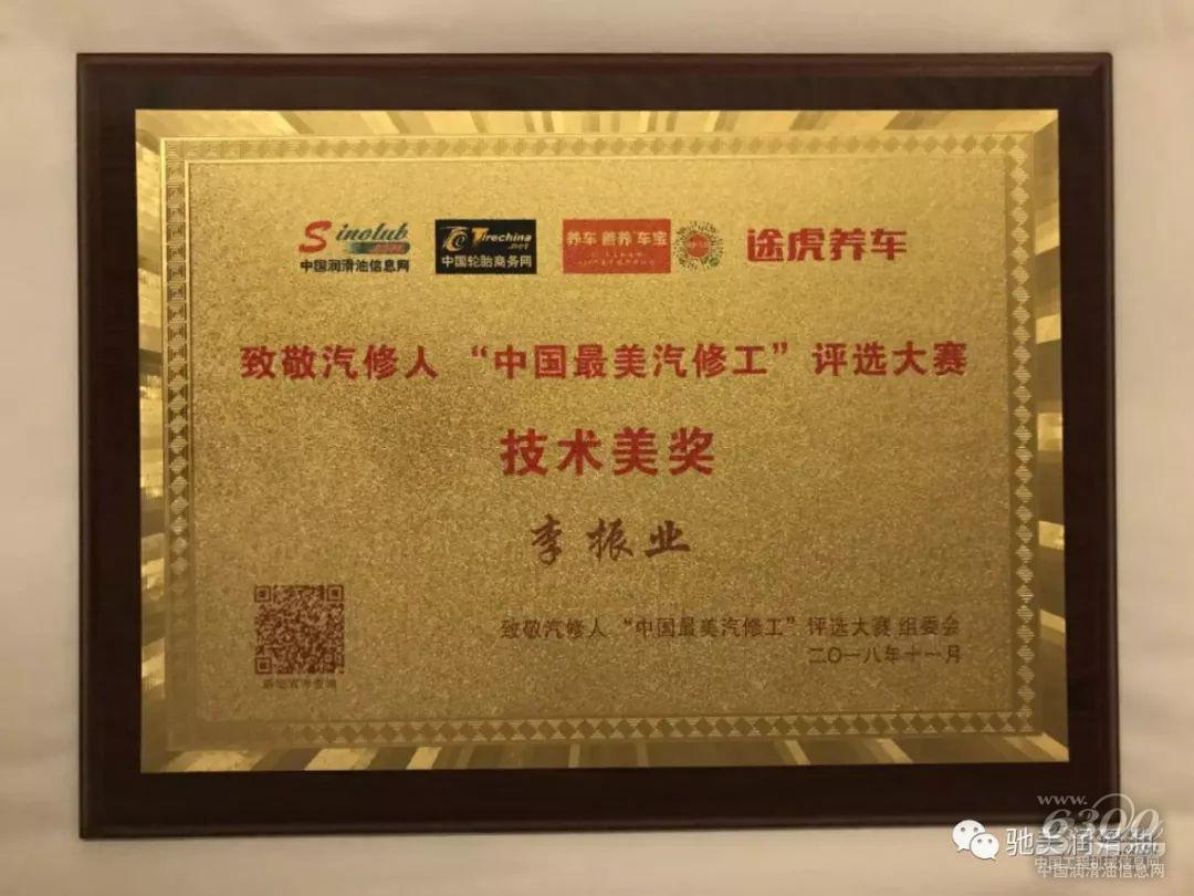 驰美选送人员喜获全国最美汽修工一等奖