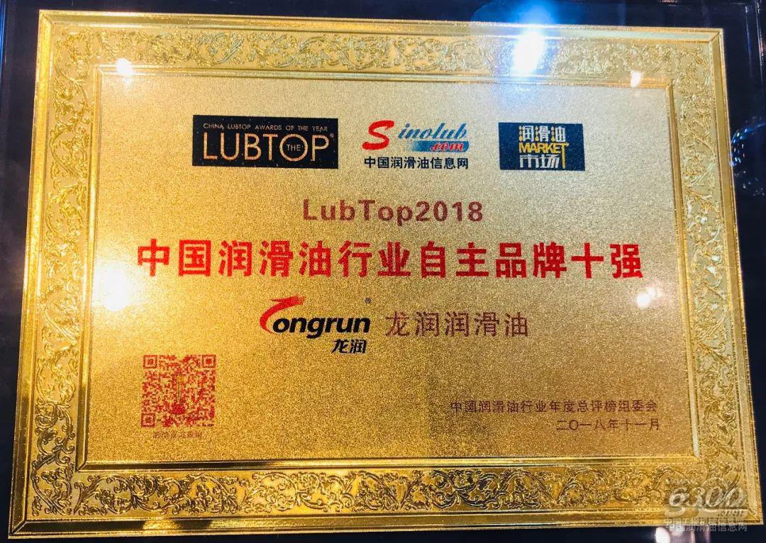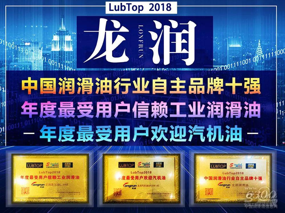 龙润润滑油荣获“LubTop2018中国润滑油自主品牌十强”