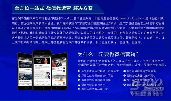 China Lubricant Information Network (www.sinolub.com) is an all-media platform that integrates automobile gene and mechanical gene and has big influence in the lubricant industry chain, an organizer of LubTop Awards, known as “Oscars of the Lubricant Industry”, a national high-tech enterprise, a unit that “observes contract and values credit” rated by the Administration for Industry and Commerce of Guangdong Province and an e-commerce demonstration pilot in the industry and information field of Guangdong. We have won many honors including “Most Influential Company Award in the Mobile Internet Industry” and “Outstanding Contribution Award in the E-commerce Industry of China”. We publish the latest news about the lubricant industry chain and industry analysis reports, provide Internet technology support, car maintenance and use data, offline and online marketing planning and brand communication services to lubricant and automotive aftermarket enterprises.