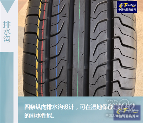 近距离看这款轮胎,第一感受就是那四条深邃不见底的纵向排水沟,主打湿地排水性能的意图非常明显。内外肩采用的开放式排水槽,贯穿式的横向花纹设计,更加证实了我们的判断,一切都是为加快排水速度设计,保证汽车在湿滑路面正常行驶。
