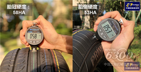 至于硬度,测得胎冠硬度为58HA,胎侧硬度为53HA,偏软的胎面配方弱化了接地冲击,有利于降低胎噪,保障了舒适度。