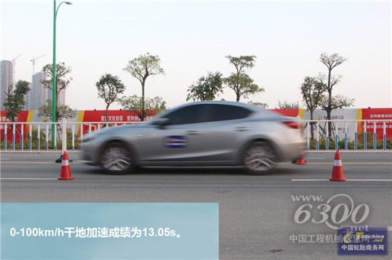 0-100km/h加速是对轮胎纵向抓地力的考验,抓地力越好,加速时间越短。测试时使用D挡,关闭牵引力辅助及车身稳定系统,采用弹射起步的方法加速,进行五次测试,成绩取最好的一组。