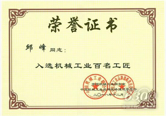 近日,中国机械工业联合会、中国机械工业品牌战略推进委员会评选的“机械工业百名工匠”名单公布,全国劳动模范、“全国五一劳动奖章”获得者、国家级技能大师、公司设备动力部维修电工邱峰当选“机械工业百名工匠”。