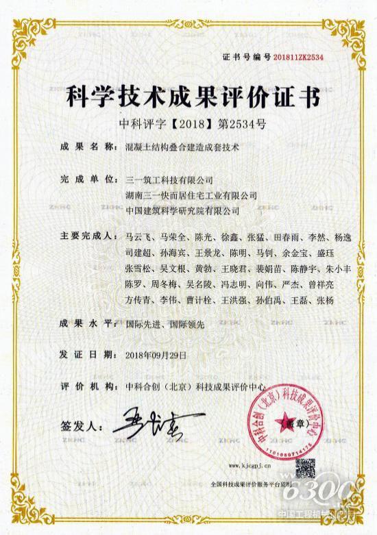 2018年9月,由中国工程院院士叶可明、院士肖绪文、全国勘察设计大师娄宇等9位顶尖专家对SPCS成套技术进行了成果评价。专家们一致认为,该技术集设计、装备、生产、施工于一体,结构整体性好,综合效益显著,具有广泛的推广应用前景,整体技术达到“国际先进水平”,部分技术达到“国际领先水平”。