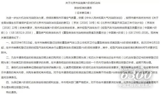 2019年2月11日,北京市生态环境局发布《关于北京市实施第六阶段机动车排放标准的通告(征求意见稿)》,对国六实施标准做出了明确的要求。