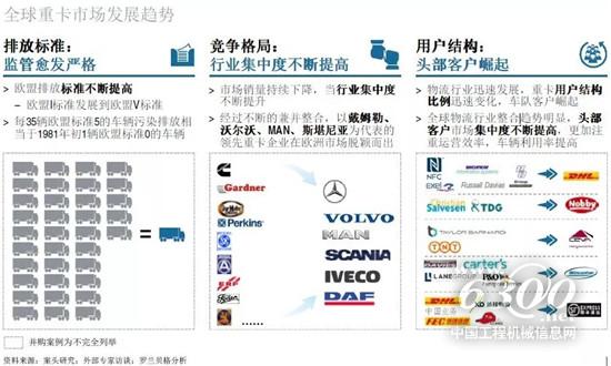 重卡市场1.0阶段的特点是市场激发、快速增长;2.0阶段的特点是市场成熟、结构调整;3.0阶段的特点是创新技术、多元模式、精细运营。罗兰贝格认为,放眼未来,贯穿上游技术、下游客户及主机厂自身的十大趋势将引领中国重卡3.0时代的变革:
