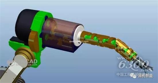 多采用5或6自由度关节式结构,手臂有较大的运动空间,并可做复杂的轨迹运动,其腕部一般有2~3个自由度,可灵活运动。