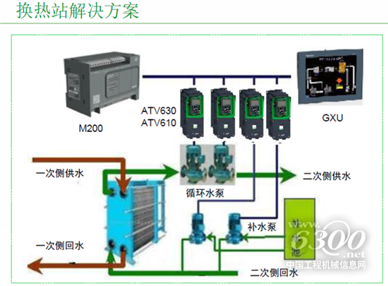 施耐德电气御程系列变频器AVT6X0/9X0系列低压变频器凭借业界极端环境下运行和10年长寿命设计,配合M200PLC和GXU系列触摸屏成为换热站最优解决方案