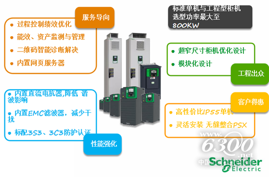 供热设施中变频器是主要谐波源,产生的谐波必须严格控制,以避免谐振。施耐德电气变频器是首款服务为导向的变频器,关注完整的生命周期,过程绩效优化、能耗监测和管理;保障供热系统的安全低耗运行同时,另单机标配进线电抗器和EMC滤波器,减小对电网的冲击,优化电能质量。