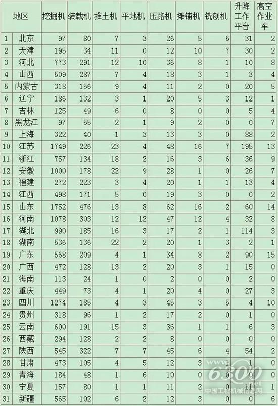 维特根福格勒,37台;三一路机,36台;徐工道机,31台。