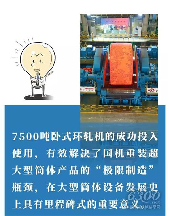 日前,在国机集团所属国机重型装备集团股份有限公司(以下简称“国机重装”)生产现场,一件直径达6.2米的大型筒节锻件经过连续一个小时的紧张作业,终于锻制成型。完成这一高温环形锻件轧制任务的是国机重装自主研制的世界最大的7500吨卧式环轧机。