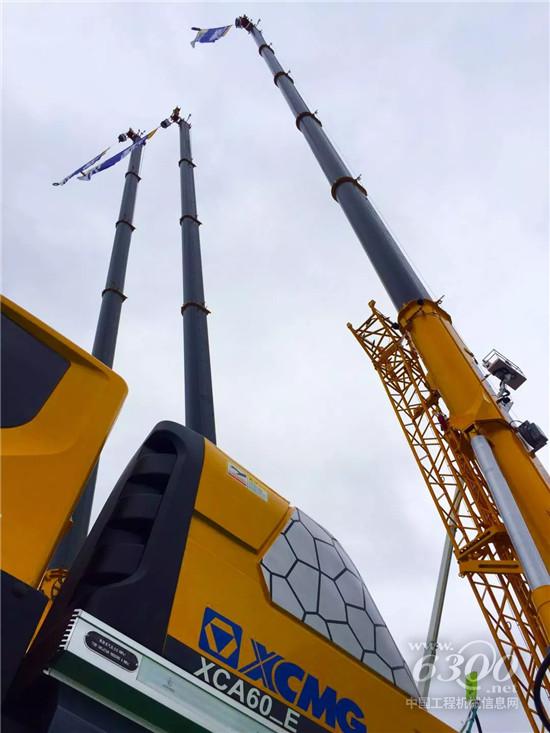 60吨全地面起重机在欧洲市场年需求量230~260台,占欧洲市场总量20%左右,是全地起重机销量最大的产品。在本次展会现场,一款早已在海外扬名的XCA60_E三轴极致化全地面起重机更是备受青睐。整机采用全球最严格的欧洲标准设计,以G技术平台为基础,运用10项全新关键技术,全球首创 “互联网+”智能起重机,将移动互联、移动终端遥控功能融为一体;同时全面符合欧洲标准法规,满足StageIV排放要求,产品通过CE与WVTA认证,满足欧洲12t上路许可要求。