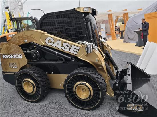 凯斯 SV340B 滑移装载机身着金色盛装出席展会,配以全新定制款专属内饰和独一无二的车贴图案。1969 款原版 Uniloader 同台一展风采。传统和现代、经典与创新在此交相辉映。