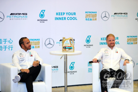 梅赛德斯-AMG-马石油F1车队的车手刘易斯–汉密尔顿和瓦尔特里–博塔斯也来到发布会现场,向广大媒体和马石油客户代表展现了他们对马石油润滑油的支持和信赖。