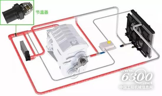 当机体内的冷却液温度进一步提升时,达到节温器阀门开启的温度时,发动机的冷却系统则进入了“大循环”,此时则加强了发动机的冷却效果,保证了发动机长时间稳定运行。
