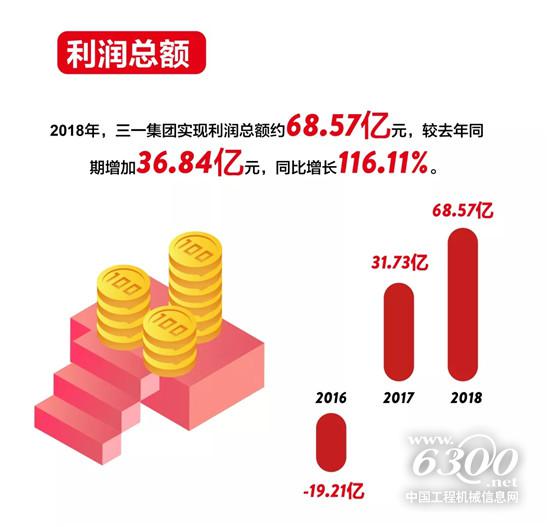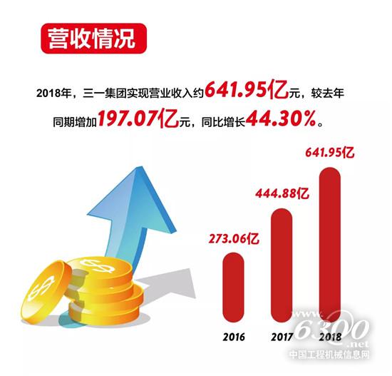 根据2018年年度财务报告,三一集团2018年实现营业收入641.95亿元,同比增长44.30%;利润总额68.57亿元,同比增长161.45%;经营现金流净额105.69亿元,同比增长16.99%。2018年公司各项经营能力建设取得积极进展,各项能力指标取得显著进步,经营业绩创历史最优。
